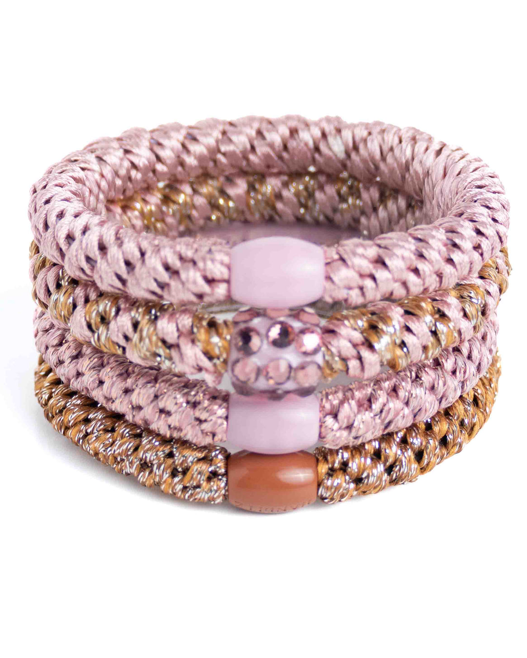 Draag ze als prachtig elastiek in je haar, of draag ze als armbandje rond je pols, zodat je altijd een elastiekje bij de hand hebt.