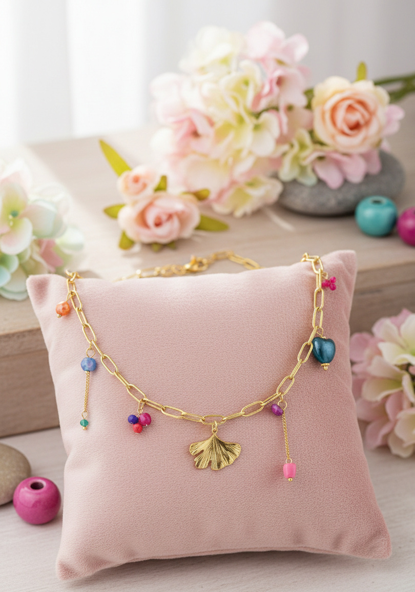 Wie zou er niet stralen met deze prachtige bedelketting? Hij is gemaakt van 304 stainless steel wat betekend dat het sieraad 100% waterproof is. Er hangen diverse mooie bedels aan gemaakt van o.a: keramiek, hematiet, acryl en glaskralen;