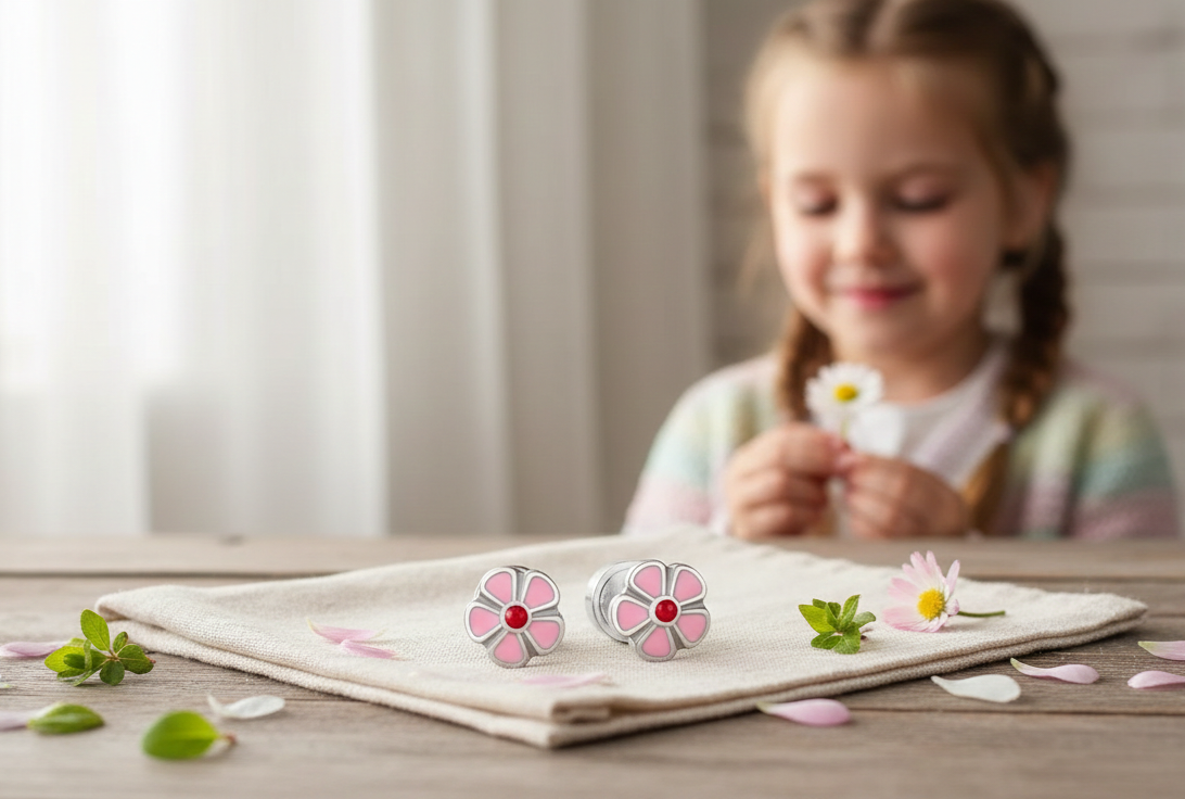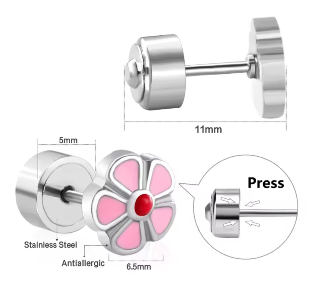 Maak elke outfit compleet met deze vrolijke roze bloemetjes! Deze oorbellen zijn niet alleen superleuk om te zien, maar hebben ook een 'geheime' sluiting. Je moet op de zijkantjes drukken om ze open te maken, waardoor ze veel veiliger zijn dan gewone oorbellen. Geen zorgen meer over verloren sieraden op het schoolplein!