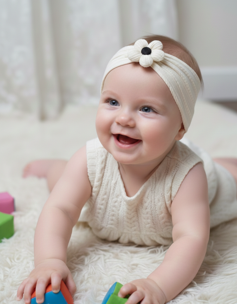 Geef de outfit van je kindje een unieke touch met dit gedetailleerde haarbandje. Het bandje heeft een prachtige kabelstructuur en zal elk meisje doen stralen! Dankzij de flexibele structuur is dit het ideale "meegroei-accessoire".