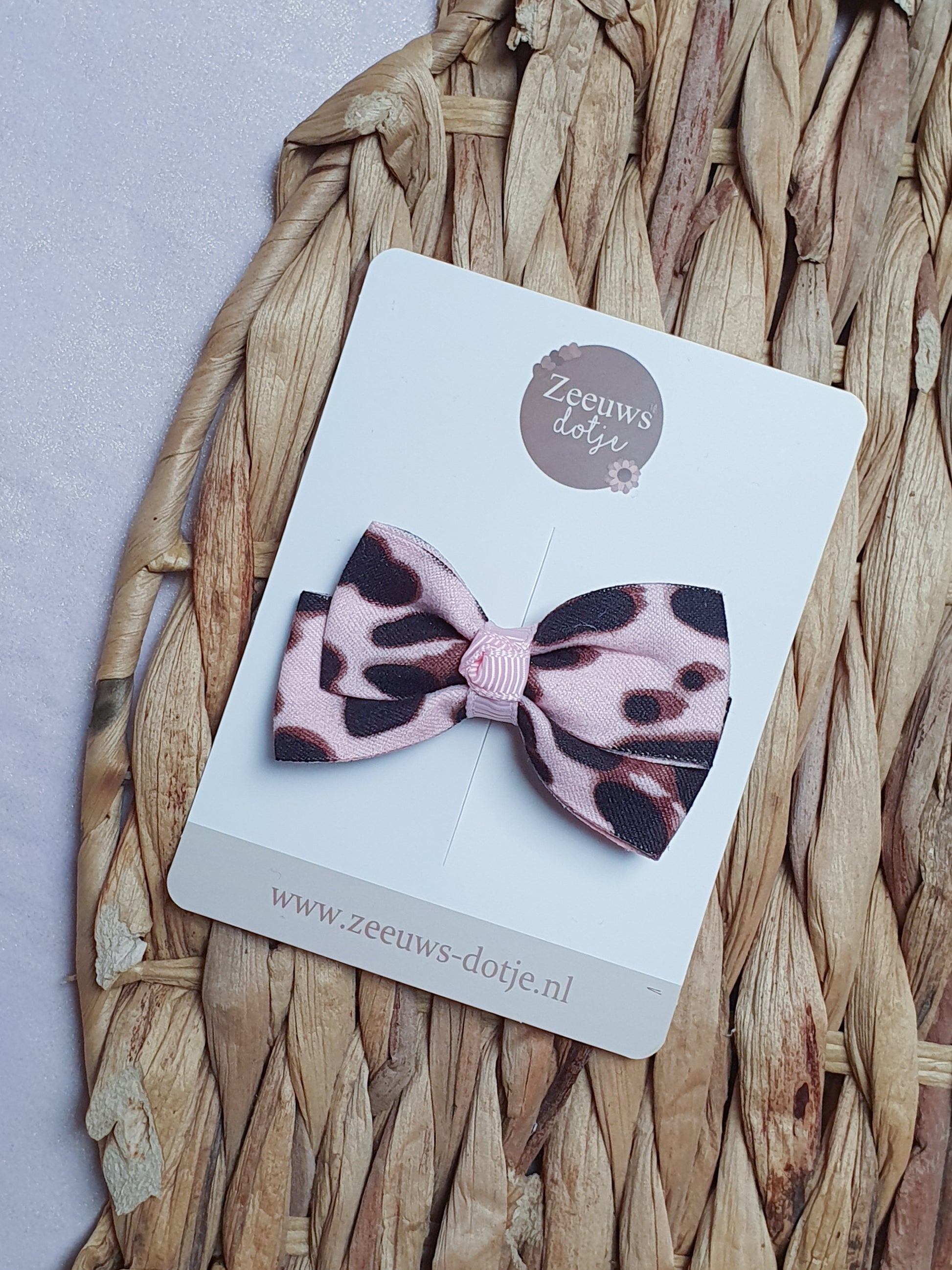 Dit schattige strikje met een speelse panterprint is een favoriet voor elke dag. De combinatie van de hippe print en de zachte roze tinten zorgt voor een leuk accent in het haar van je kleintje.