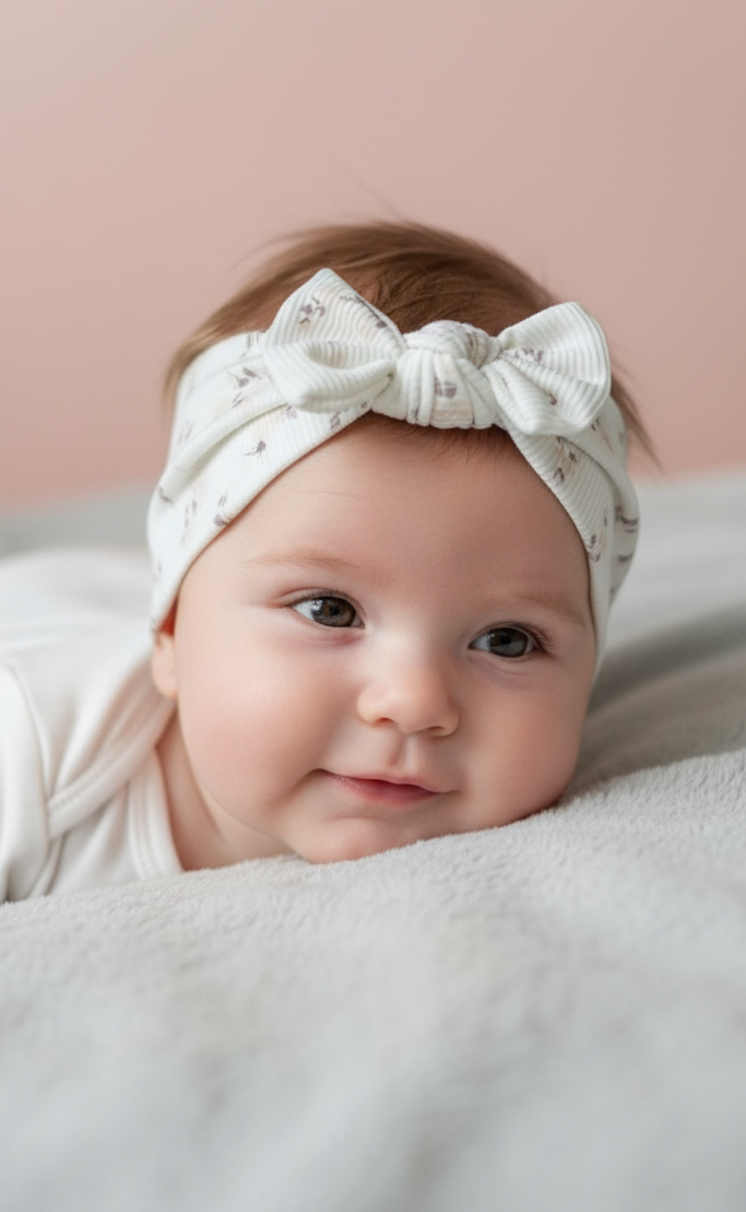 Super leuke knoop haarband, geschikt vanaf newborn/baby, maar heel erg lang door te dragen vanwege het elastiek.