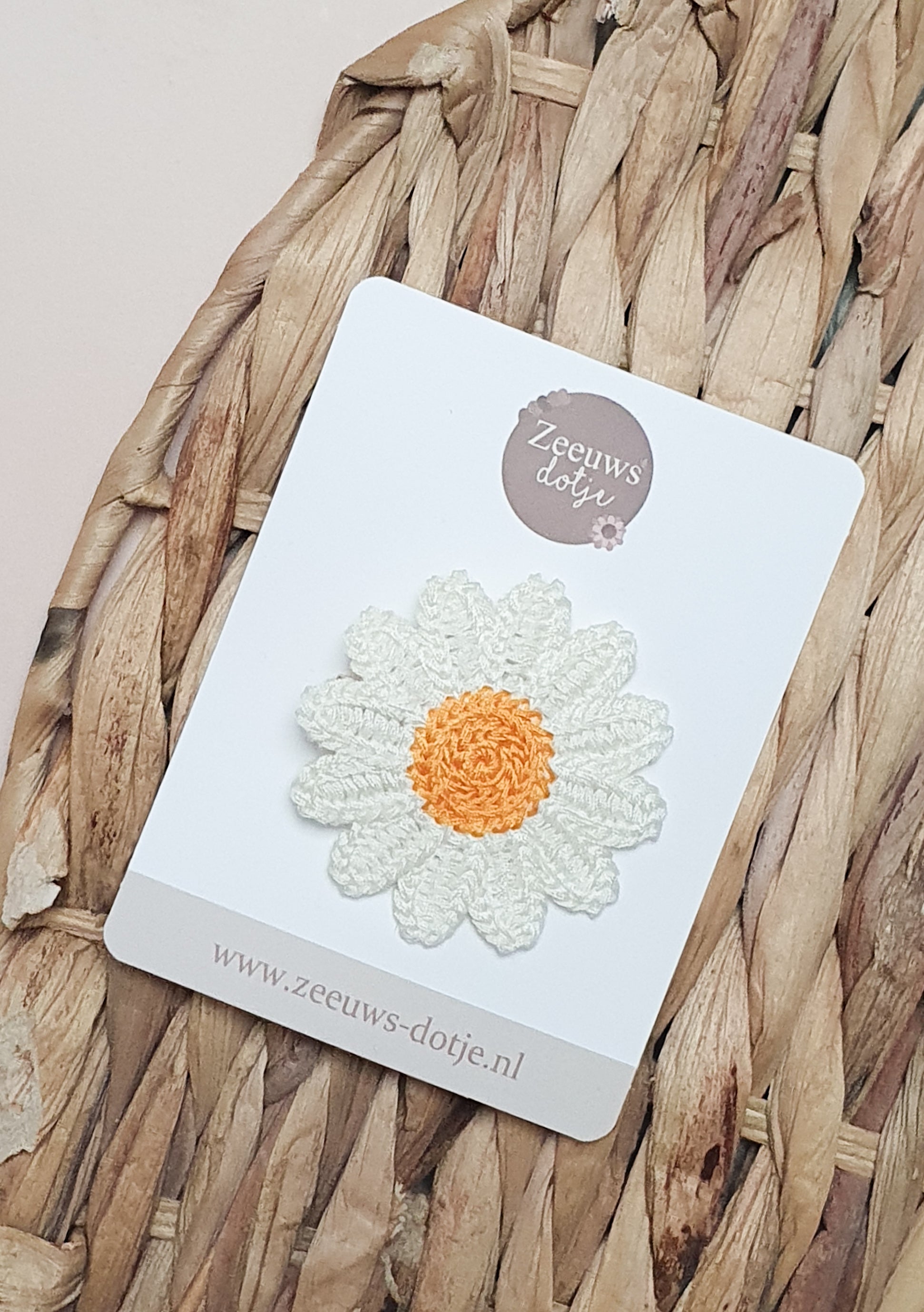Omdat ik weet dat elk haartype anders is, heb ik dit madeliefje zo ontworpen dat het voor iedereen geschikt is. Je kunt kiezen uit een fijn antislipspeldje (perfect voor de allerkleinsten met dunne haartjes) of een stevige alligatorclip voor de grotere meiden.