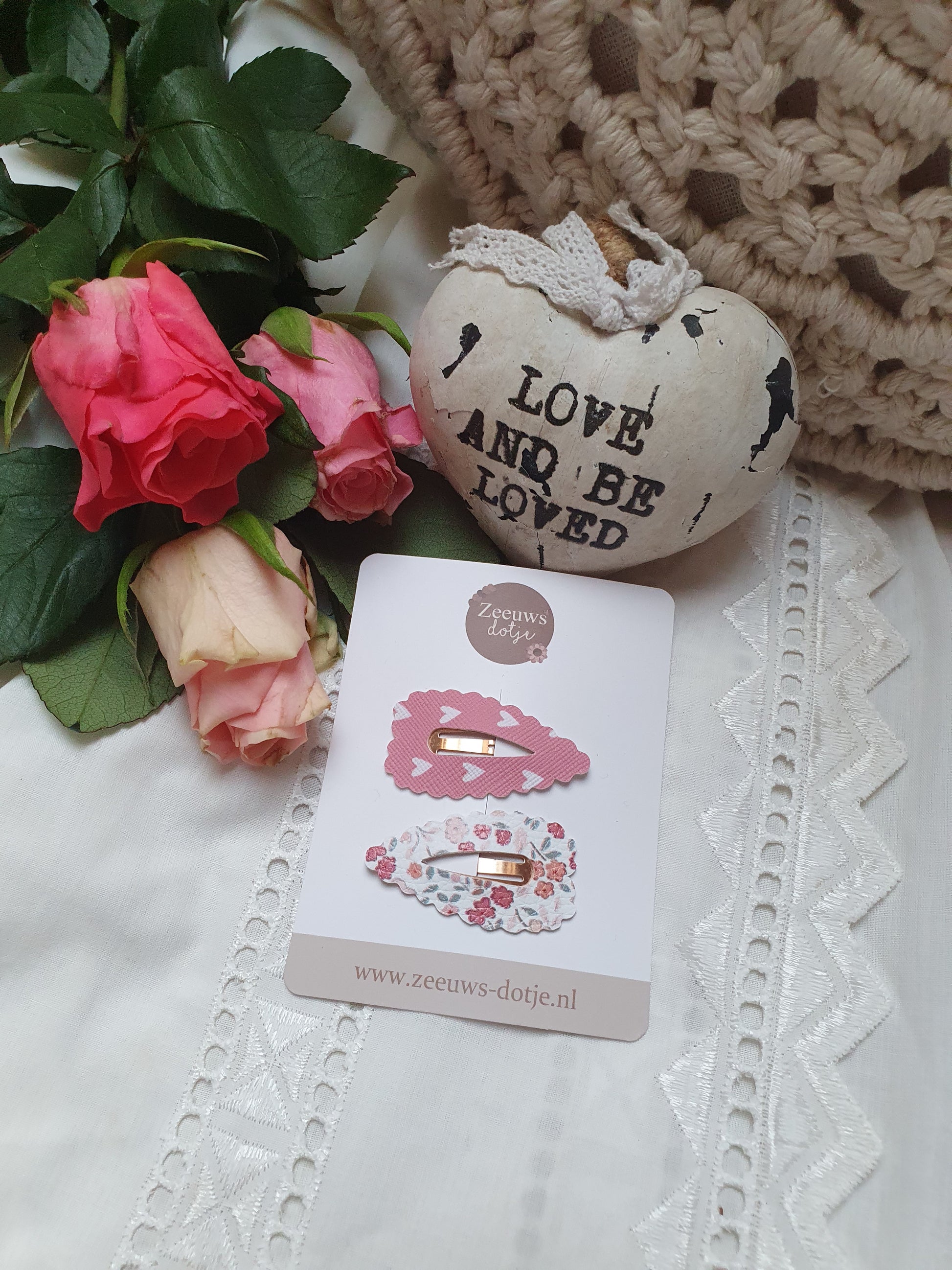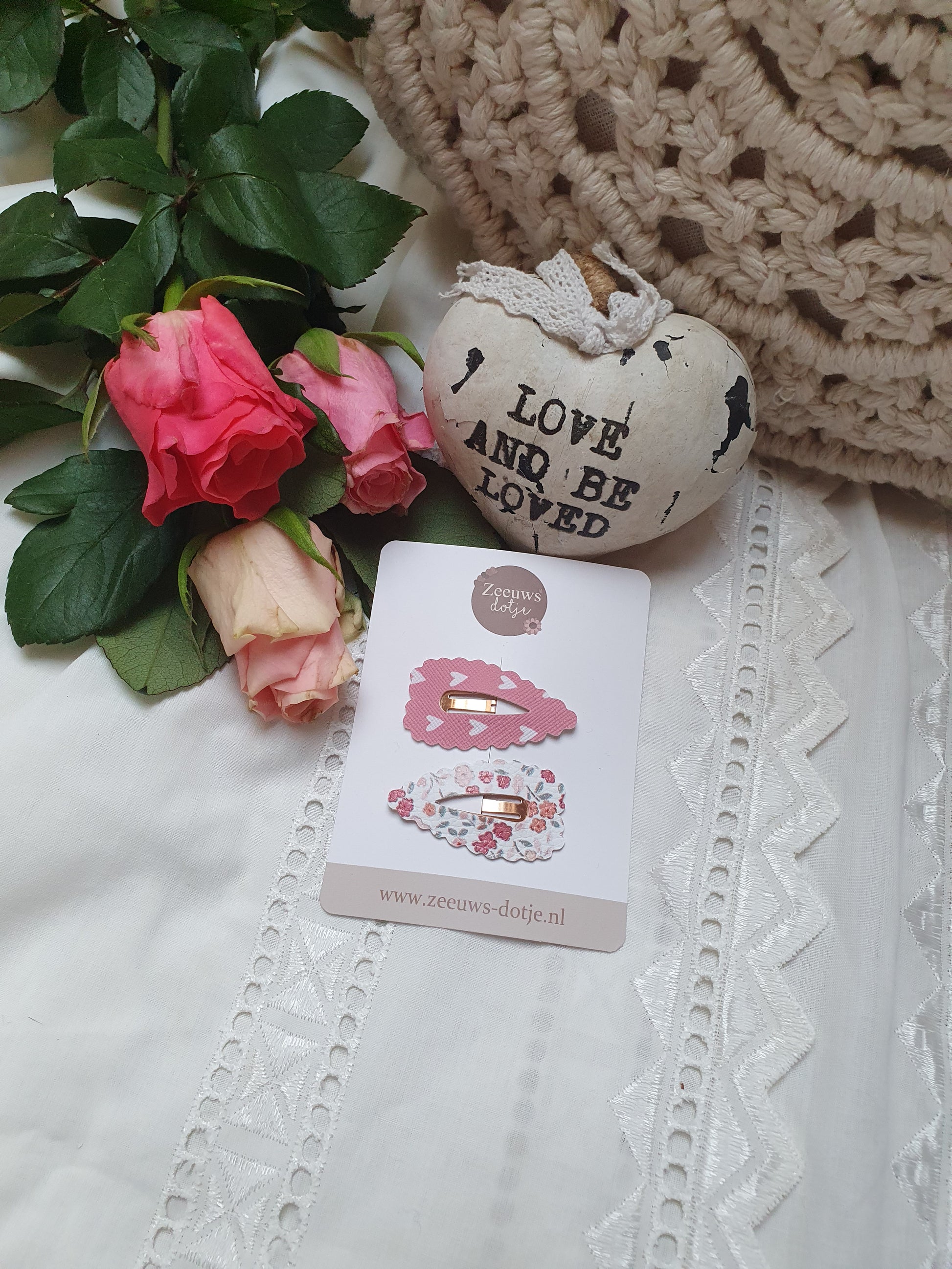 Supermooi setje klik klakspeldjes: het ene is roze met een hartjesprintje het andere heeft een fijn bloemenprintje. Beschikbaar in 3,4 en 5 cm! Limited editionΒ